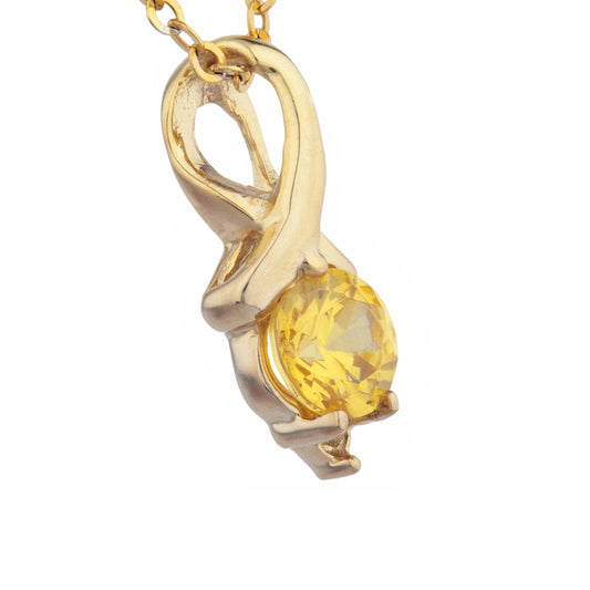 14Kt Gold Yellow Citrine & Diamond Round Design Pendant Necklace