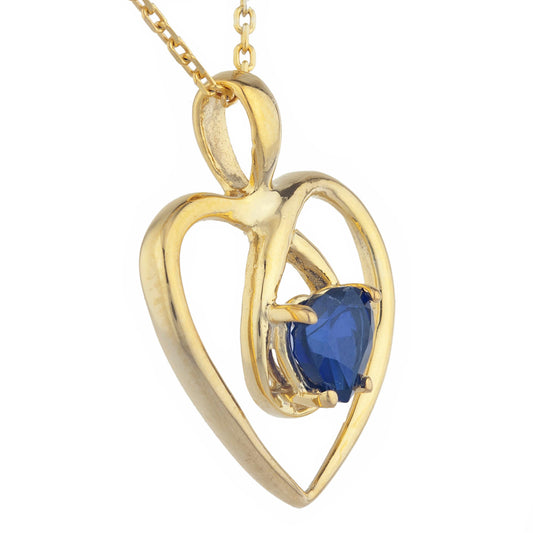 14Kt Gold Blue Sapphire Heart Design Pendant Necklace