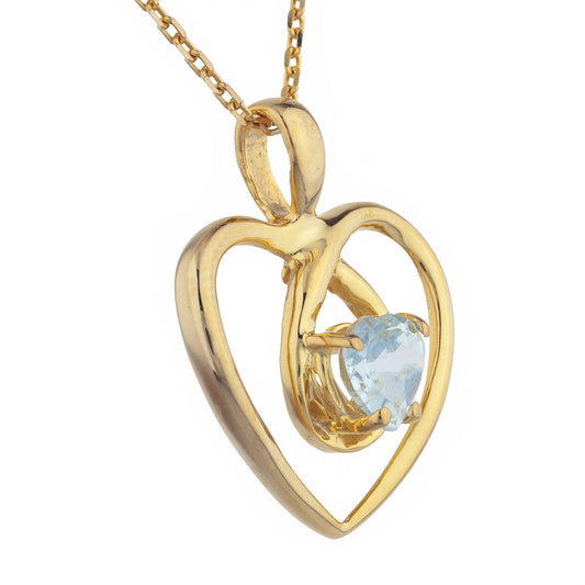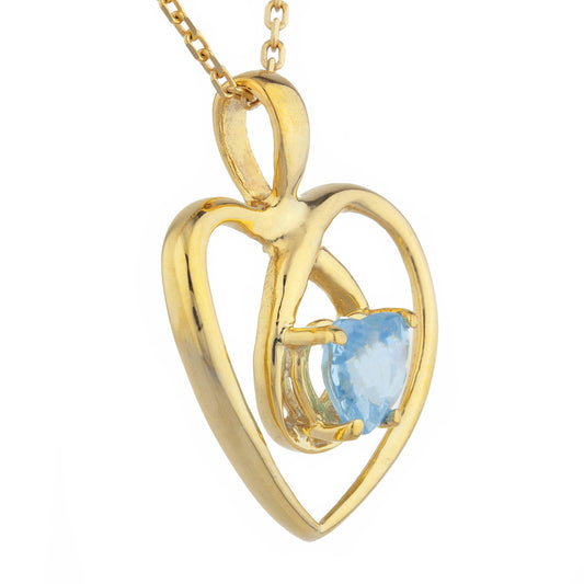 14Kt Gold Blue Topaz Heart Design Pendant Necklace