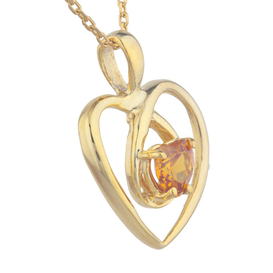 14Kt Gold Orange Citrine Heart Design Pendant Necklace