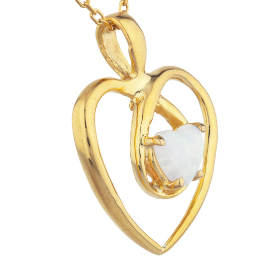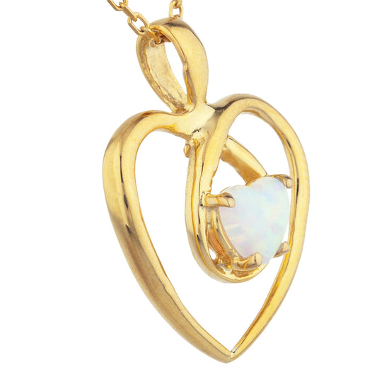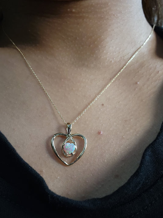 14Kt Gold Genuine Opal Heart Design Pendant Necklace