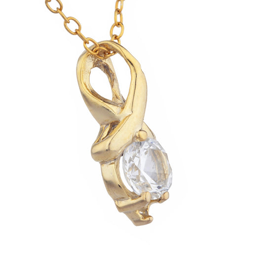 14Kt Gold Zirconia & Diamond Round Design Pendant Necklace