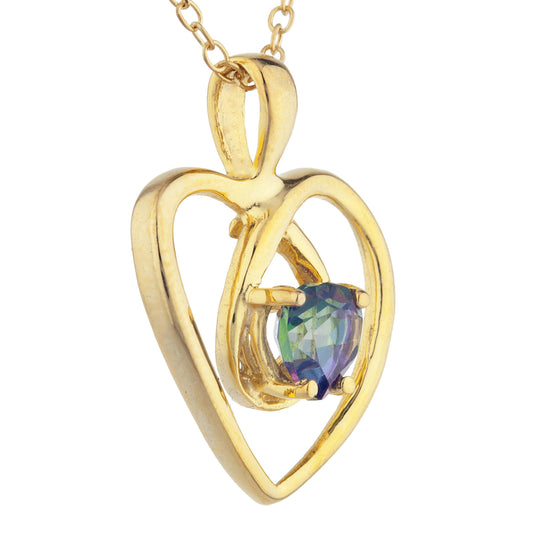 14Kt Gold Natural Mercury Mist Mystic Topaz Heart Design Pendant Necklace