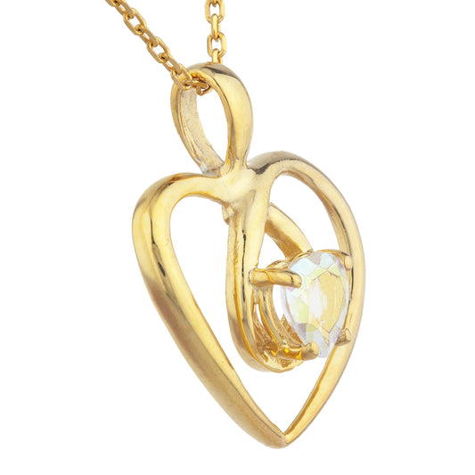14Kt Gold Natural Mystic Topaz Heart Design Pendant Necklace