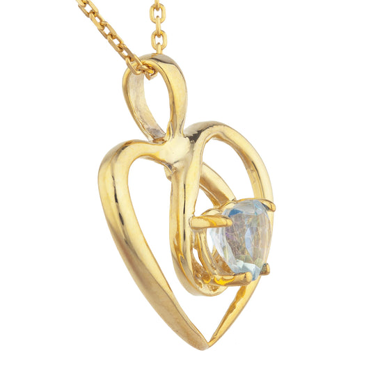 14Kt Gold Natural Blue Mystic Topaz Heart Design Pendant Necklace