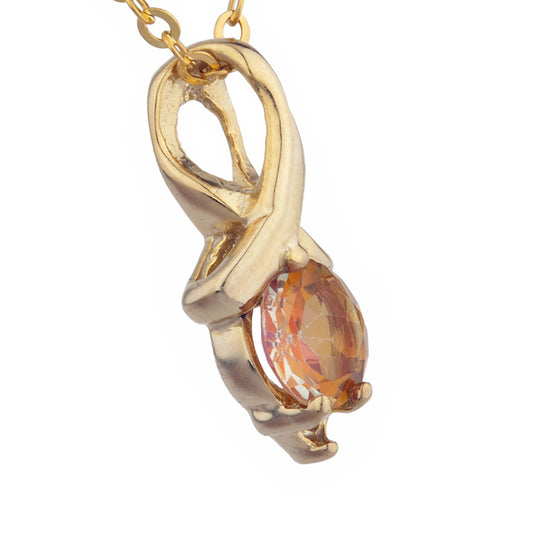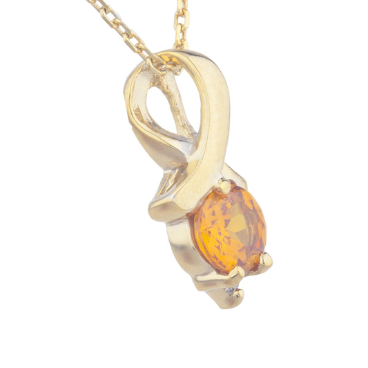 14Kt Gold Orange Citrine & Diamond Round Design Pendant Necklace