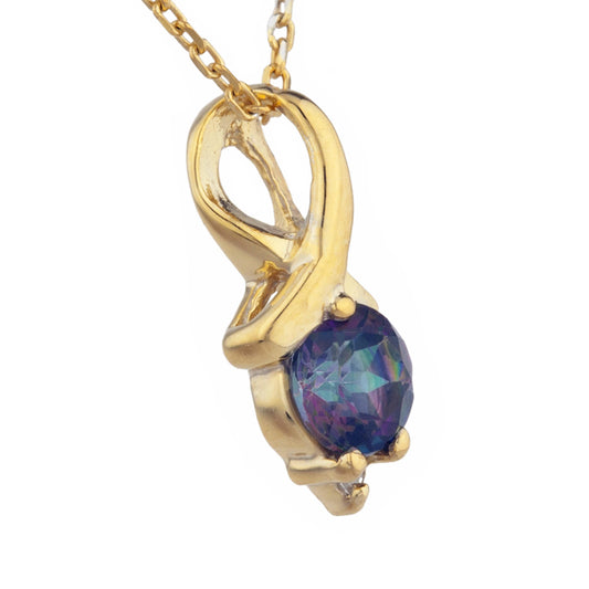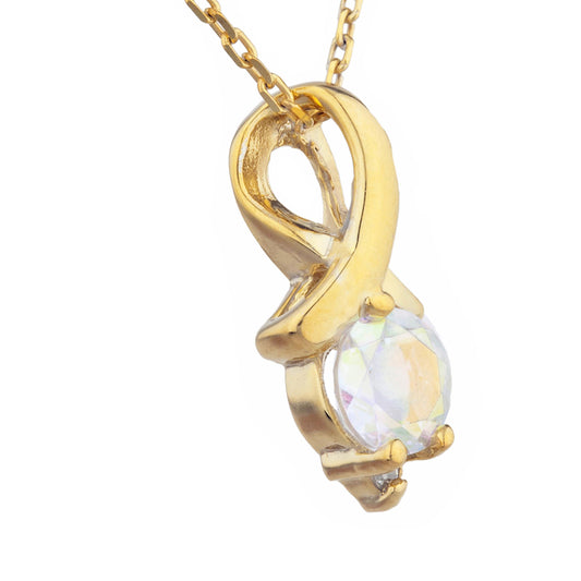 14Kt Gold Natural Mystic Topaz & Diamond Round Design Pendant Necklace
