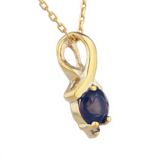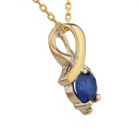 14Kt Gold Blue Sapphire & Diamond Round Design Pendant Necklace
