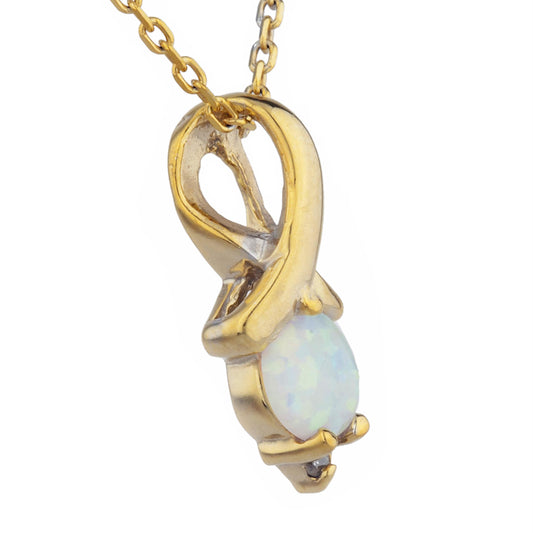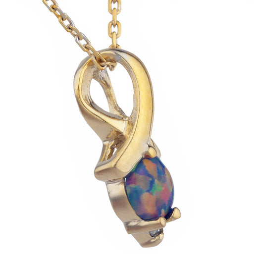 14Kt Gold Genuine Opal & Diamond Round Design Pendant Necklace