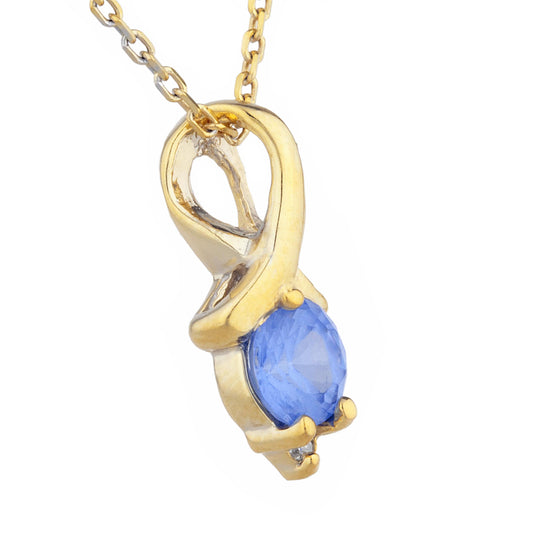 14Kt Gold Tanzanite & Diamond Round Design Pendant Necklace