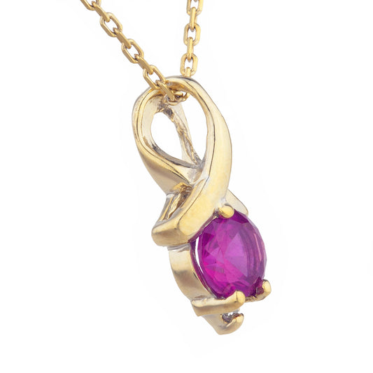 14Kt Gold Created Ruby & Diamond Round Design Pendant Necklace