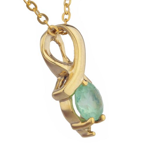 14Kt Gold Green Sapphire & Diamond Round Design Pendant Necklace