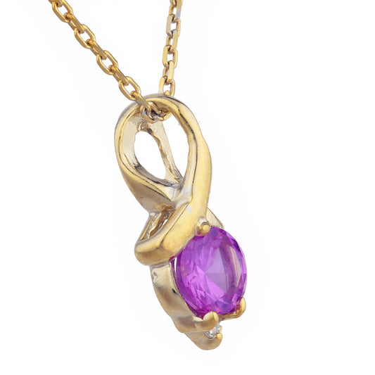 14Kt Gold Pink Sapphire & Diamond Round Design Pendant Necklace