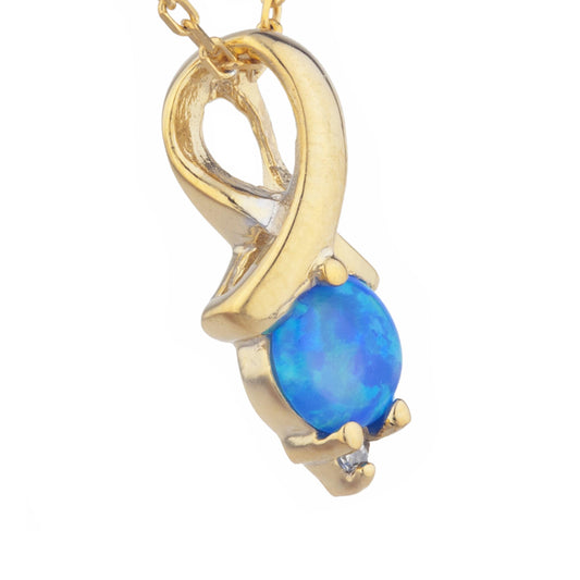 14Kt Gold Blue Opal & Diamond Round Design Pendant Necklace