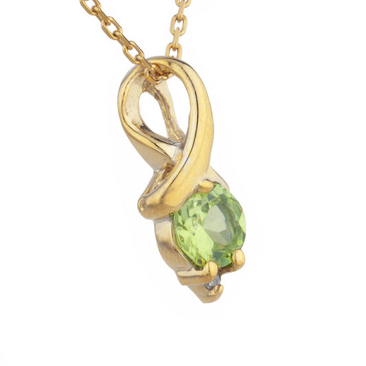 14Kt Gold Peridot & Diamond Round Design Pendant Necklace