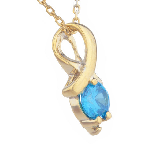 14Kt Gold Swiss Blue Topaz & Diamond Round Design Pendant Necklace