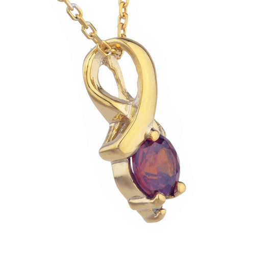 14Kt Gold Garnet & Diamond Round Design Pendant Necklace