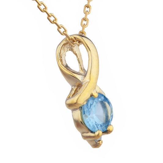 14Kt Gold Blue Topaz & Diamond Round Design Pendant Necklace