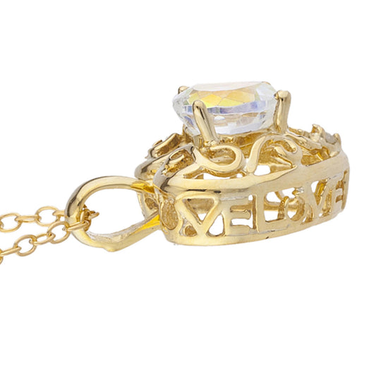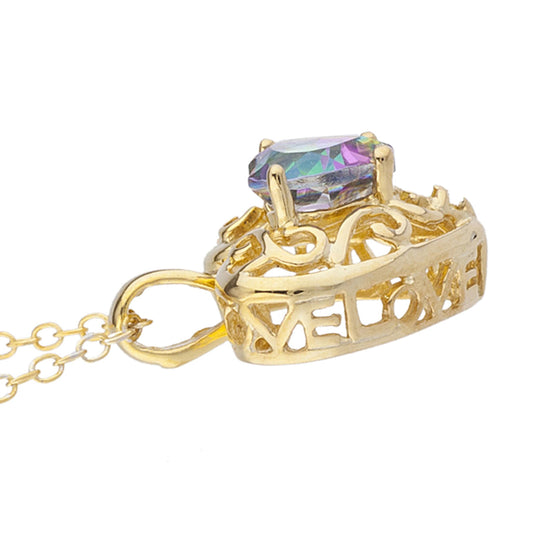 14Kt Gold Natural Mystic Topaz & Diamond Heart LOVE ENGRAVED Pendant Necklace