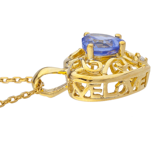 14Kt Gold Tanzanite & Diamond Heart LOVE ENGRAVED Pendant Necklace