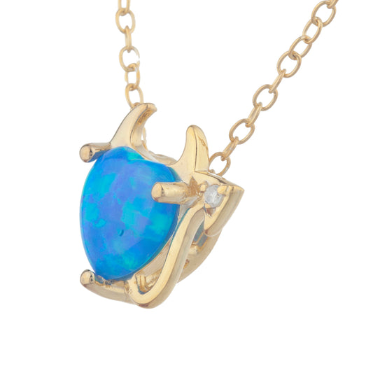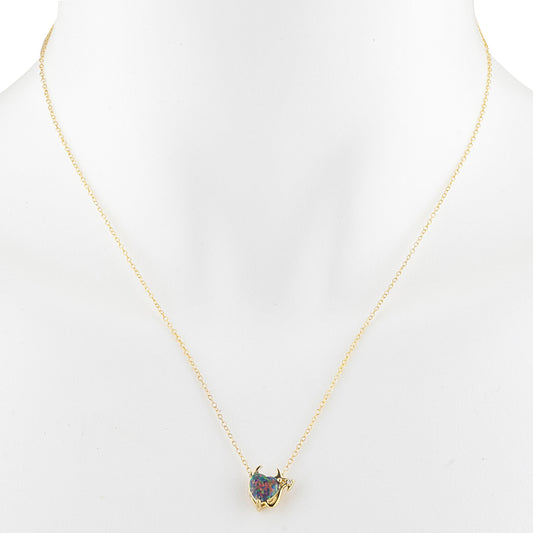 14Kt Gold Blue Opal & Diamond Devil Heart Pendant Necklace
