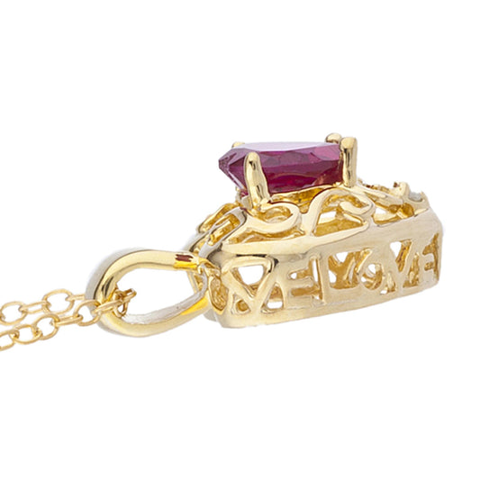 14Kt Gold Created Ruby & Diamond Heart LOVE ENGRAVED Pendant Necklace