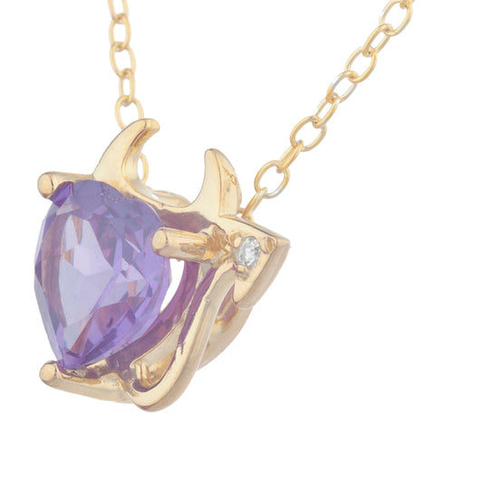 14Kt Gold 1.5 Ct Amethyst & Diamond Devil Heart Pendant Necklace