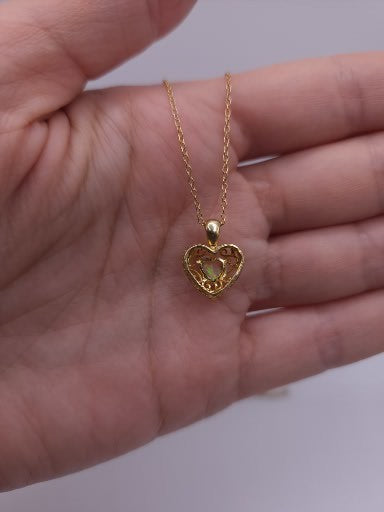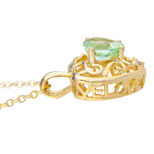 14Kt Gold Peridot & Diamond Heart LOVE ENGRAVED Pendant Necklace