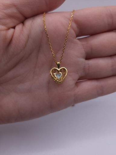14Kt Gold Aquamarine & Diamond Heart LOVE ENGRAVED Pendant Necklace
