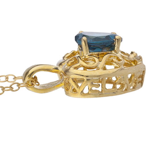 14Kt Gold London Blue Topaz & Diamond Heart LOVE ENGRAVED Pendant Necklace