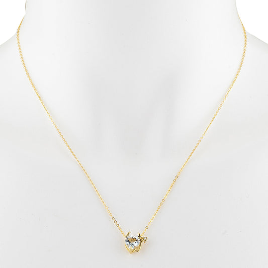 14Kt Gold 1.5 Ct Genuine Aquamarine & Diamond Devil Heart Pendant Necklace