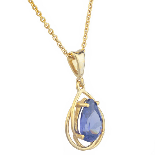 14Kt Gold 2 Ct Tanzanite Pear Teardrop Design Pendant Necklace