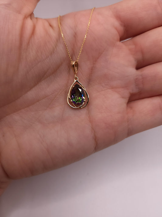 14Kt Gold 2 Ct Natural Mystic Topaz Pear Teardrop Design Pendant Necklace