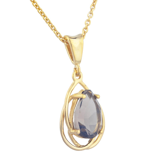 14Kt Gold 2 Ct Genuine Smoky Topaz Pear Teardrop Design Pendant Necklace