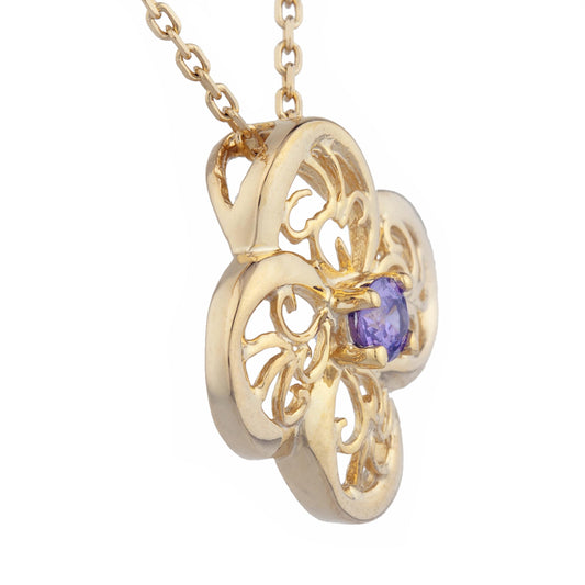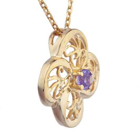 14Kt Gold Amethyst Clover Design Pendant Necklace