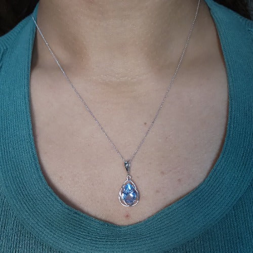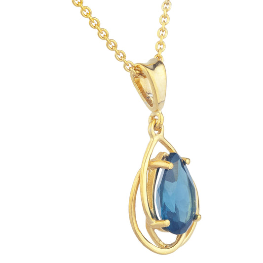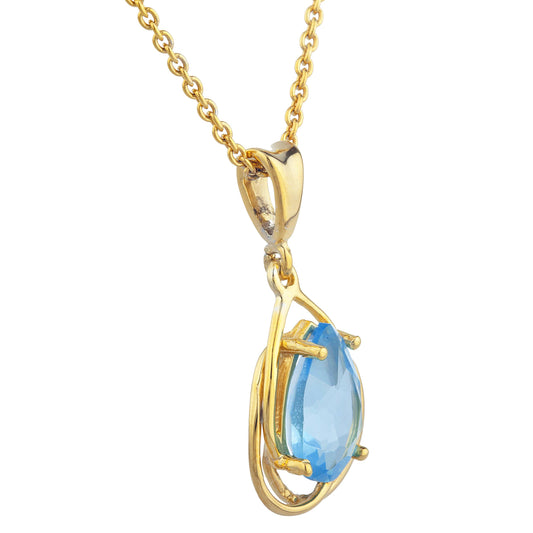 14Kt Gold 2 Ct Blue Topaz Pear Teardrop Design Pendant Necklace