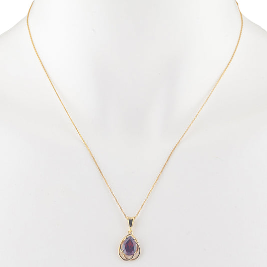 14Kt Gold 2 Ct Garnet Pear Teardrop Design Pendant Necklace