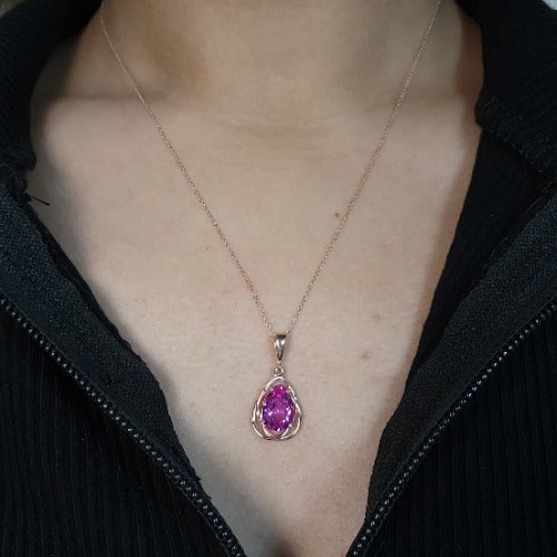 14Kt Gold 2 Ct Pink Sapphire Pear Teardrop Design Pendant Necklace