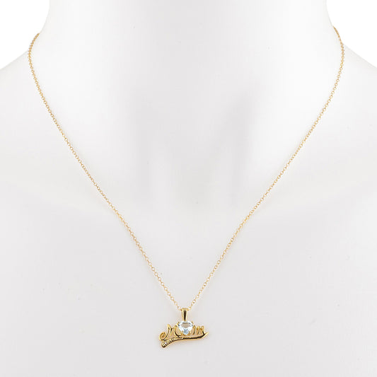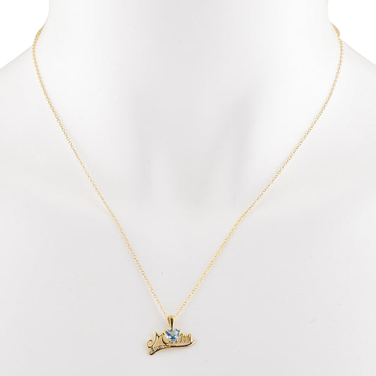 14Kt Gold Blue Topaz & Diamond Heart Mom Pendant Necklace