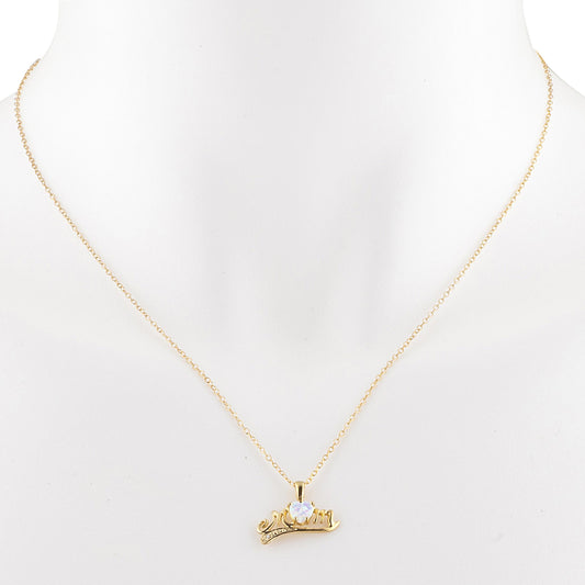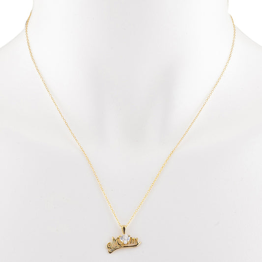 14Kt Gold Zirconia & Diamond Heart Mom Pendant Necklace