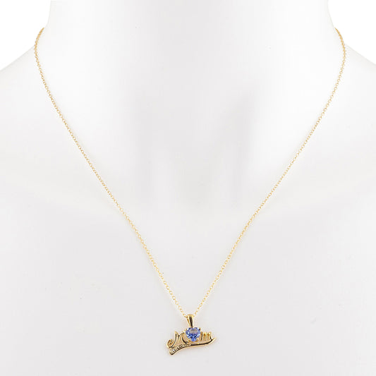 14Kt Gold Tanzanite & Diamond Heart Mom Pendant Necklace