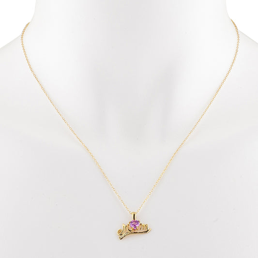 14Kt Gold Pink Sapphire & Diamond Heart Mom Pendant Necklace