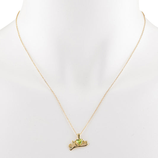 14Kt Gold Peridot & Diamond Heart Mom Pendant Necklace