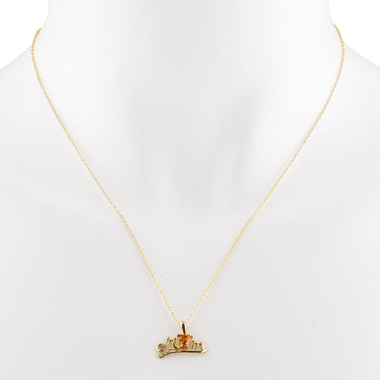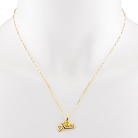 14Kt Gold Yellow Citrine & Diamond Heart Mom Pendant Necklace