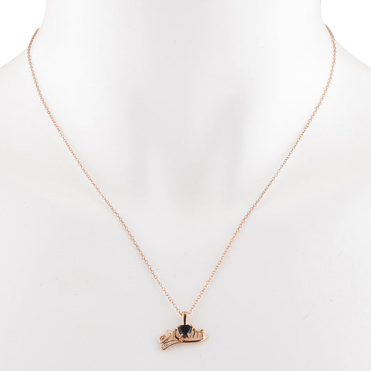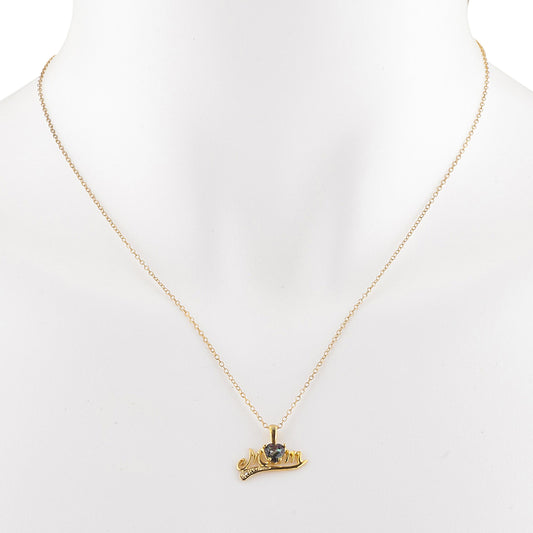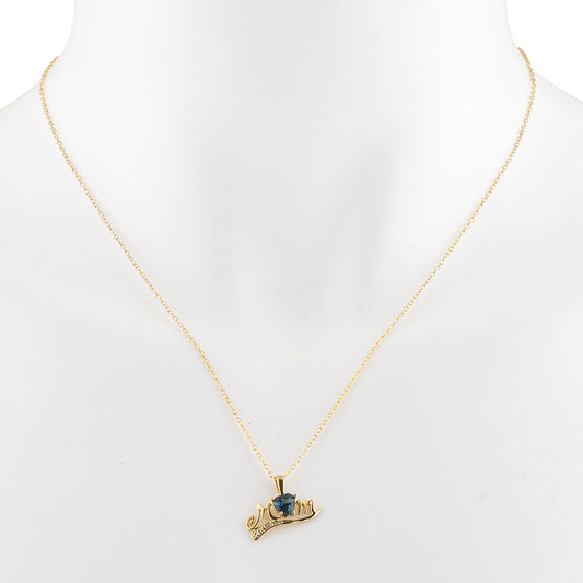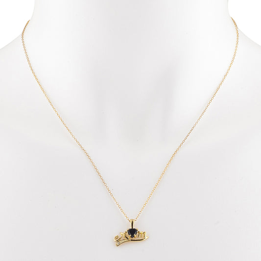 14Kt Gold Blue Sapphire & Diamond Heart Mom Pendant Necklace