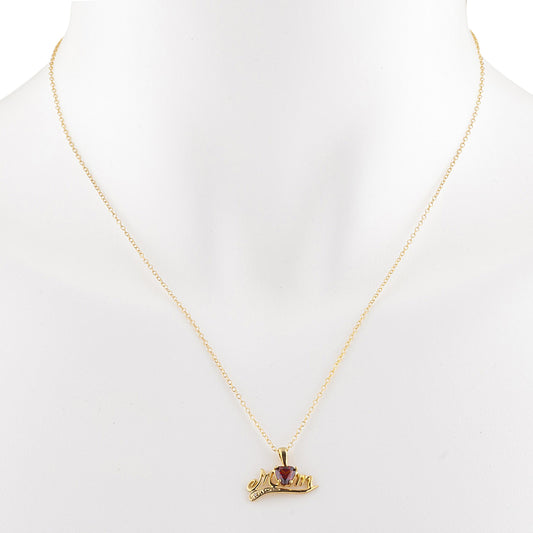 14Kt Gold Garnet & Diamond Heart Mom Pendant Necklace