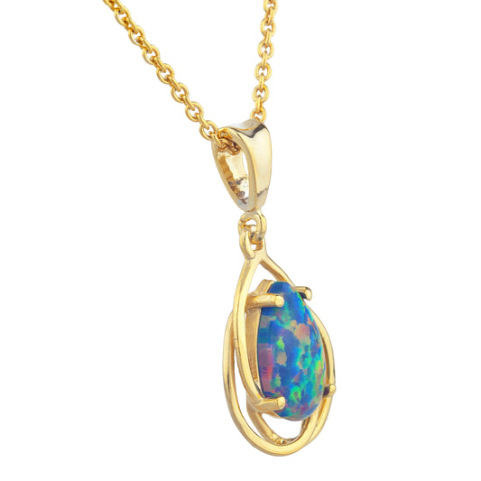 14Kt Gold Black Opal Pear Teardrop Design Pendant Necklace