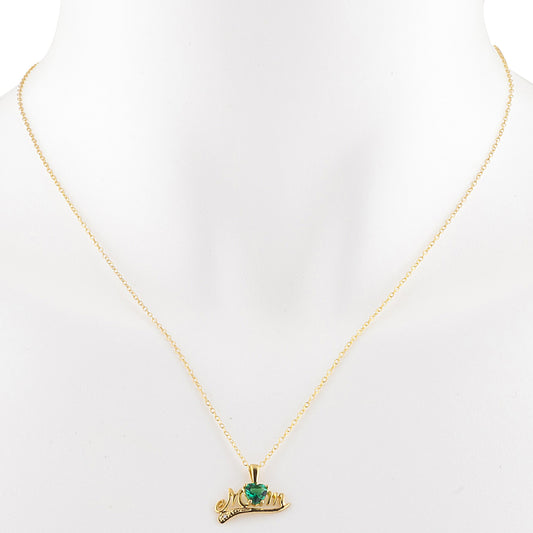 14Kt Gold Emerald & Diamond Heart Mom Pendant Necklace