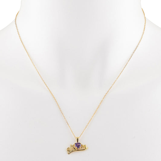 14Kt Gold Amethyst & Diamond Heart Mom Pendant Necklace