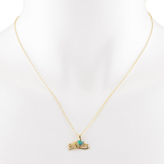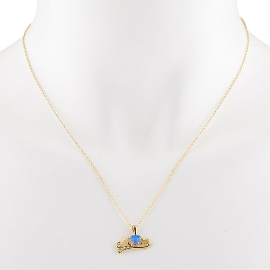 14Kt Gold Blue Opal & Diamond Heart Mom Pendant Necklace